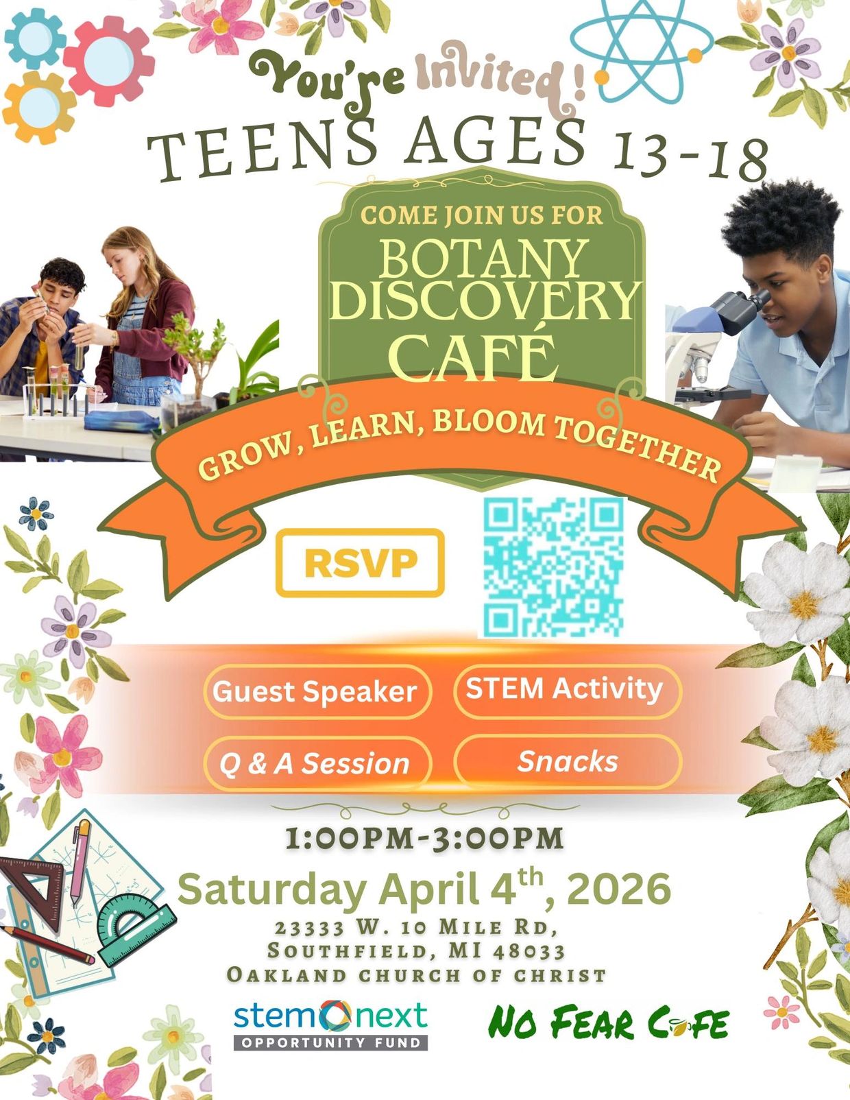 During the Teen Science Café students will dive into real botany concepts, explore how plants impact our food, medicine, and environment, and participate in hands‑on activities that make science feel alive. It’s fun, interactive, and youth‑driven. STEM isn’t just something in a textbook. It’s in the food we eat, the air we breathe, the technology we use, and the careers our kids will step into. Helping teens see STEM in the world around them builds confidence and opens doors.